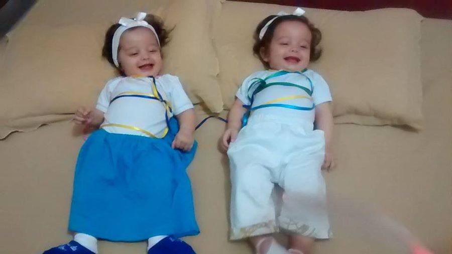 As gêmeas são filhas de Dú e Maguinho.O Francisco é filho de Thiago e Raíssa.A avó do Francisco,Regina bordou essa bandeira para o Congo.