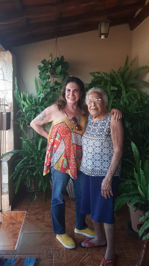 A chefona da casa, Tereza do Barateiro tem 95 anos de uma bonita vida. Minha mana Ângela esteve lá em uma visita e o convite foi reforçado. _Ângela, você volta e avisa a Soninha que meu convite tá de pé. _Vô paquí a riba a pé e avisá ela pa marcá pa descê pa bebê café. _Eu tô feliz com sua visita. _Vamos tirar uma foto? Abraçadas.