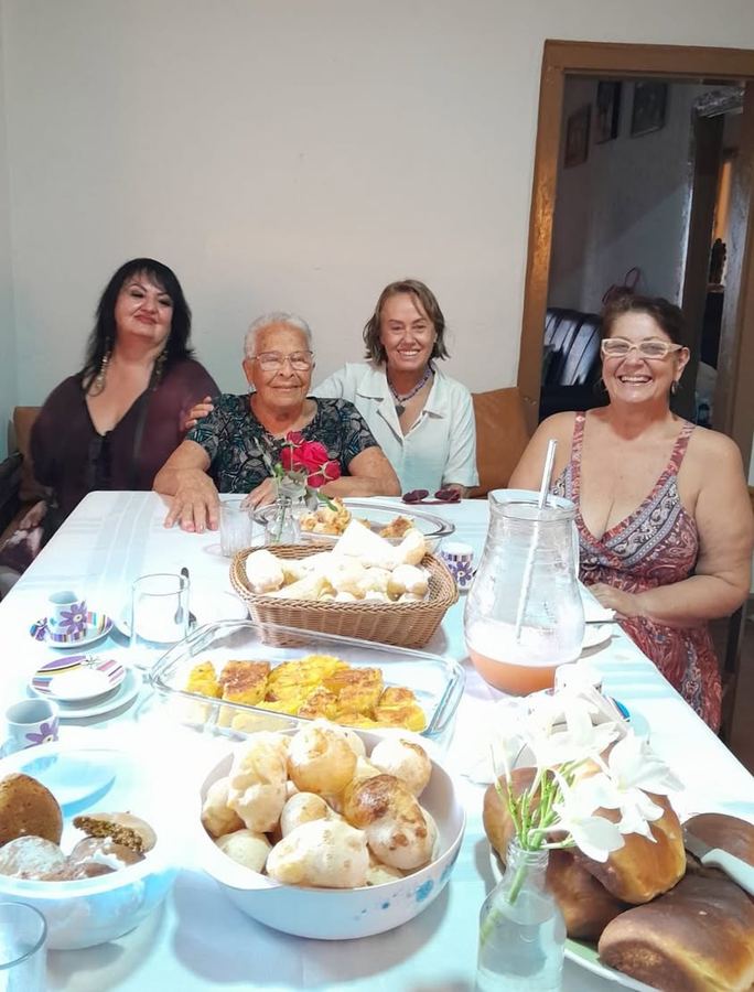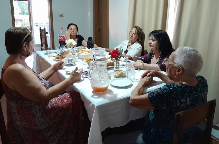 NO dia um imprevisto atrapalhou, o Gilberto não foi e nem a Ângela. A Laurinha chegou, depois eu, depois a Nini, e a simpática D. Tereza e a filha Leila eram só sorrisos e simpatia. Chegaram também as netas Rita, Deliane e a pequena Clara, e aí proseamos muito, rimos, depois fomos tomar o café.