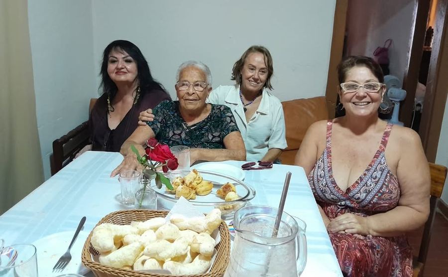 Pelo zap combinamos. _Vou levar também o Gilberto cinegrafista para uma entrevista com sua mãe, é desejo dele, afinal, ela sabe muito de nossa história. _Minha mãe pediu pra você e a Ângela trazer a Laurinha e a Nini também. _Taoquêi, nóis vai.