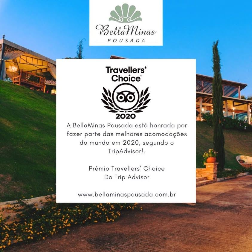 A BellaMinas Pousada está honrada por fazer parte das melhores acomodações do mundo em 2020, segundo o TripAdvisor!