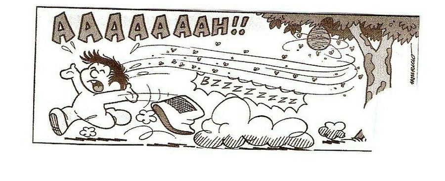 ''Nossa! O Jair meu irmão foi desgramento, merece é marimbondo de monte agarrado nele.Eu tinha de 4 pra 5 anos, ele mexeu, enfesou as ''ABÊIA" da casa de uma horta, foi uma revoada, ele correu, não dei conta de fugir, as abelhas me juntaram sem dó. Agarraram no meu cabelo, nas costas, na bunda, nas pernas,nos meus ''guardados''e berrei, mas berrei tanto, a minha mãe também, e quanto mais eu berrava, parece que elas achavam que eu tava era chamando.