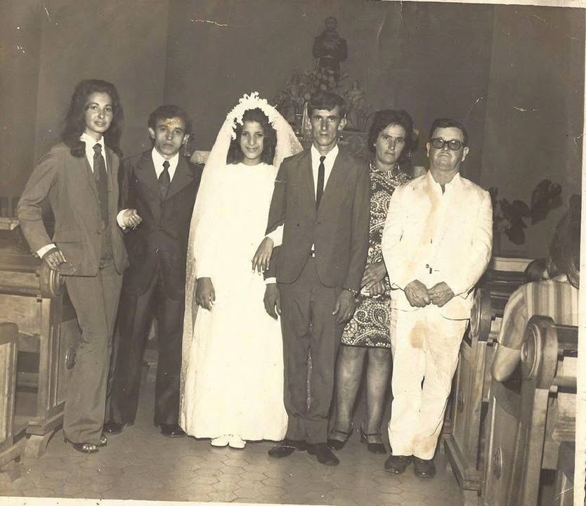 Ao lado dos noivos, a madrinha Agda,o padrinho Pedro, e o outro casal é Geralda e Tulinho Baldoni.