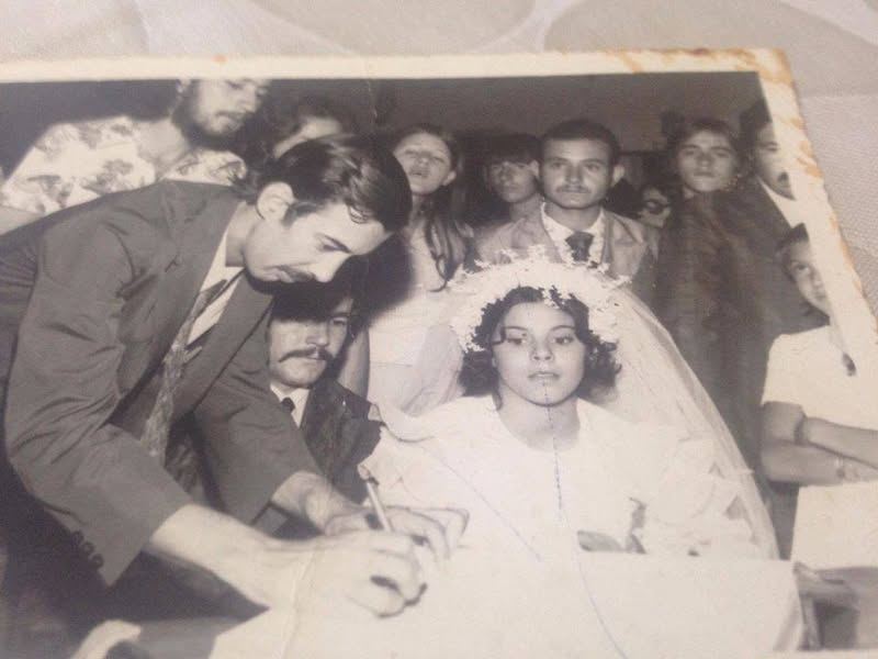 Aí de namoradinha virou noivinha e esposinha porque o casamento foi marcado e ela foi parar no altar com essa carinha assustada.Hoje ela conta e é muito engraçado ouvir suas inexperiências.Os convidados ficaram encantados com a formosura da sobrinha da Maria do Domingo.Moreninha linda de doer.O noivo todo metido laçando a prenda.