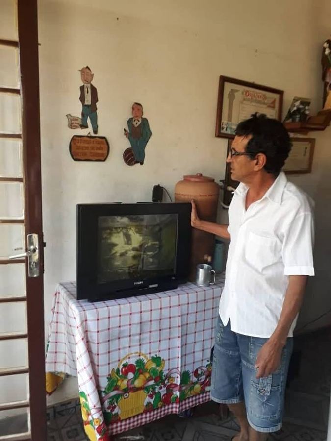 _Zé Nivaldo, qual a TV mais antiga na cidade. _Esparrama,não, mas é a lá da casa do Nery. É da primeira leva,das primeiras e parece que saiu da loja.É preto branco,mas tem até aquela tela de plástico colorida q punha por cima.Tem base? _Funciona? _FOnciona,perfeitinha, tamém liga só em hora de missa...
