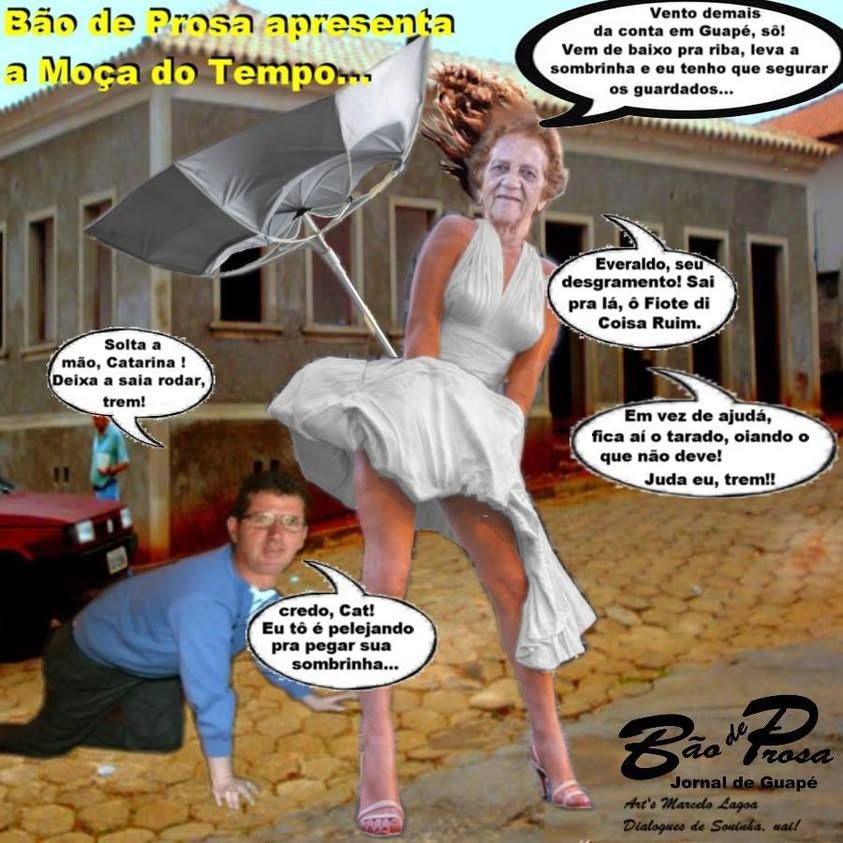 Credo! Que venturia Agora Dispois Do Armoço! O Trem Tá Feio. O Vento Tá Forte Demais. Tá até Zunino. Voano Fôia padrento de casa, uma puerada cuncisco levantano que sóveno! Mió Asmuié Num Saí De Vestido, Senão Vai Mostrar Os Guardados.Fernando e Tatão teve de carmá a saia déza.