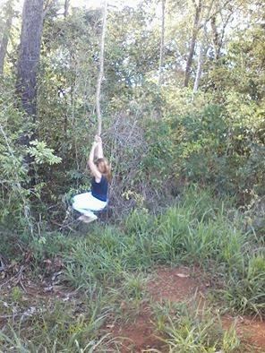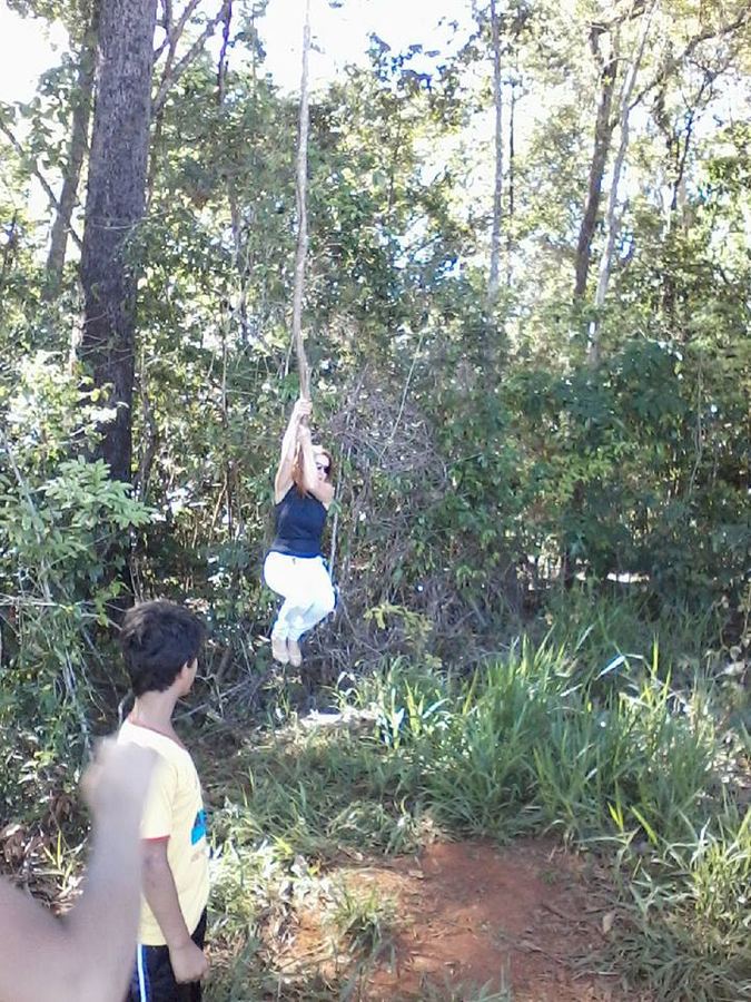 FAZENDO TIROLESA NO CIPÓ! Essa é a professora Jarlene da maria do Kin.